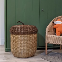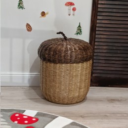The large basket for toy in the shape of a acorn fits perfectly into the design of a children's room in forest style. It will also find its place in the bedroom or living room, where you can hide blankets and pillows after a little nap.