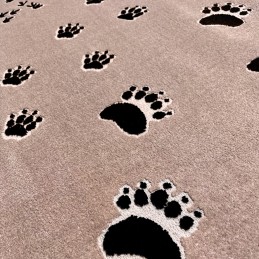 FOREST ANIMAL TRACK 3D beige rug is pleasant to the touch which makes a child happy to play, relax and rest on it. Its dense weave perfectly insulates from the cold floor. It is made of polypropylene fibers, an excellent substitute for wool. Polypropylene fibres do not shed, and a rug made of them is easy to clean and recommended for allergy sufferers. The rug is durable and resistant to wear. It does not discolor from light nor fade over time, so we can be sure that the rug will last in the child's room for many years.