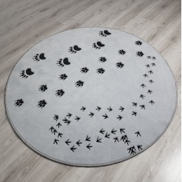 The FOREST ANIMAL TRACK 3D children's rug is a great choice for a room with a forest theme. On the gray rug, we can see tracks of animals that we can meet in the forest. The pattern depicts trodden paths left for us by forest animals, which stimulates the imagination of the child and develops interest in the world of nature. It is a perfect rug for both boys' and girls' rooms. Its pattern encourages active play, where a child can walk "step by step" on animal tracks with their own feet or with plush toys. Playing on the ANIMAL TRACK rug is also an excellent opportunity for the child's linguistic development, because there are so many possibilities to create stories about the animals that have left tracks for us, to imitate their voices and to creatively invent new adventures. The ANIMAL TRACK rug can attract the eye because it is made in a special 3D technique. The traces of animal tracks are concave, because the pile is of a different height. When you close your eyes, you can feel each track with your hand and guess which of your animal friends left it on the rug. This is a great idea for developing tactile sensitivity in children.