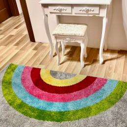 The rainbow rug stimulates children's imagination and is so soft and pleasant to the touch that your child will love to spend time on it, inventing new games all the time. The colourful stripes on the rug can become racing tracks for cars, or hills where horses and ponies graze. Or maybe they are colourful paths trodden by fairytale fairies and princesses? See for yourselves, how many games will be created on this rainbow rug.