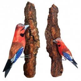 The birds are about 20 - 22 cm long and are mounted on a bark that is approximately 26 - 28 cm long