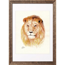 This picture from the Jungle safari series depicts a lion with a lush red mane.