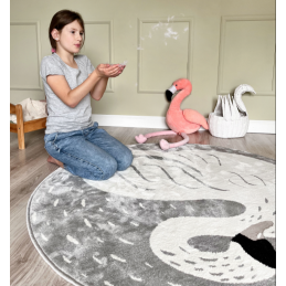 The SWAN rug is maintained in universal colours of grey and broken white, thanks to which it will suit every child's room. On the grey background of the sea tone interspersed with a ribbon of waves we can see a white swan getting ready to fly. Its beak, thanks to the use of a shorter pile, gives a 3D effect, which not only makes the rug visually more attractive, but also encourages the child to play on it.