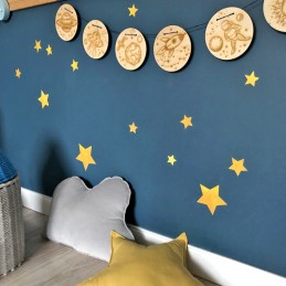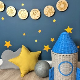 КОСМИЧЕСКУЮ ГИРЛЯНДУ можно повесить на стену или прикрепить над кроватью-шале с помощью прозрачных крючков tesa или 3M. Если это не удовлетворит вашего ребенка, мы можем предложить творческое решение - пусть ребенок выразит свою фантазию, раскрасив космическую гирлянду разноцветными красками. Сторонники экологических решений могут оставить КОСМИЧЕСКУЮ ГИРЛЯНДУ в натуральных цветах. Откроем вам секрет - нарисованная гирлянда так же удивительна, как и натуральная! У жаждущих веселья с детьми есть уникальная возможность исследовать увлекательный мир космоса, раскрашивая вместе с детьми отдельные элементы гирлянды.
