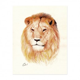 На изображении из серии Сафари и Джунгли изображен лев с пышной рыжей гривой