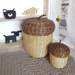 Наши контейнеры для игрушек и детских сокровищ в форме желудей прекрасно впишется в интерьер детской комнаты в лесном стиле. Также они найдут свое место в спальне или гостиной, где в большую корзину можно спрятать одеяла и подушки после небольшого сна.