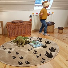 Ковер детский бежевый СЛЕДЫ - 3D динозавры