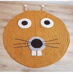 Ковер БЕЛОЧКА КАСЯ связан вручную крючком из хлопковой нити горчичного цвета