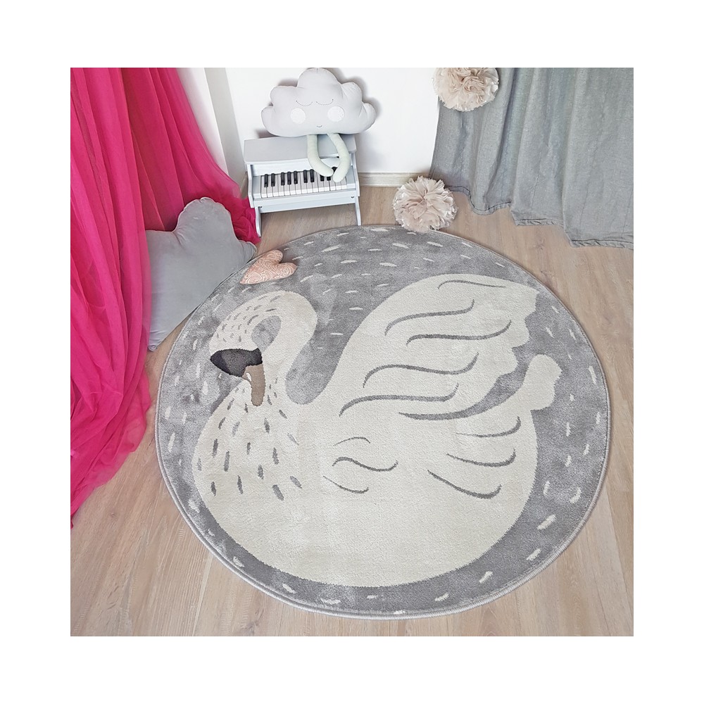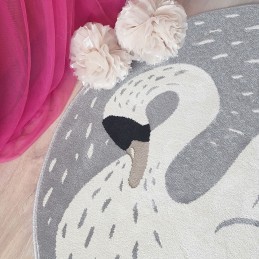 Килим ЛЕБIДЬ в сiро-бiлих тонах з мотивом білого лебедя - ідеальний вибір для дитячої кімнати
