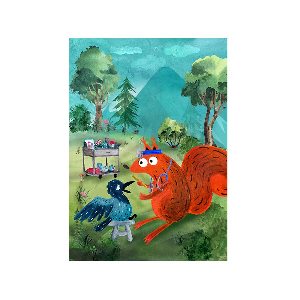 Картина БІЛКА КАСЯ ДОКТОРША відмінно підійде для дитячої кімнати в лісовій атмосфері