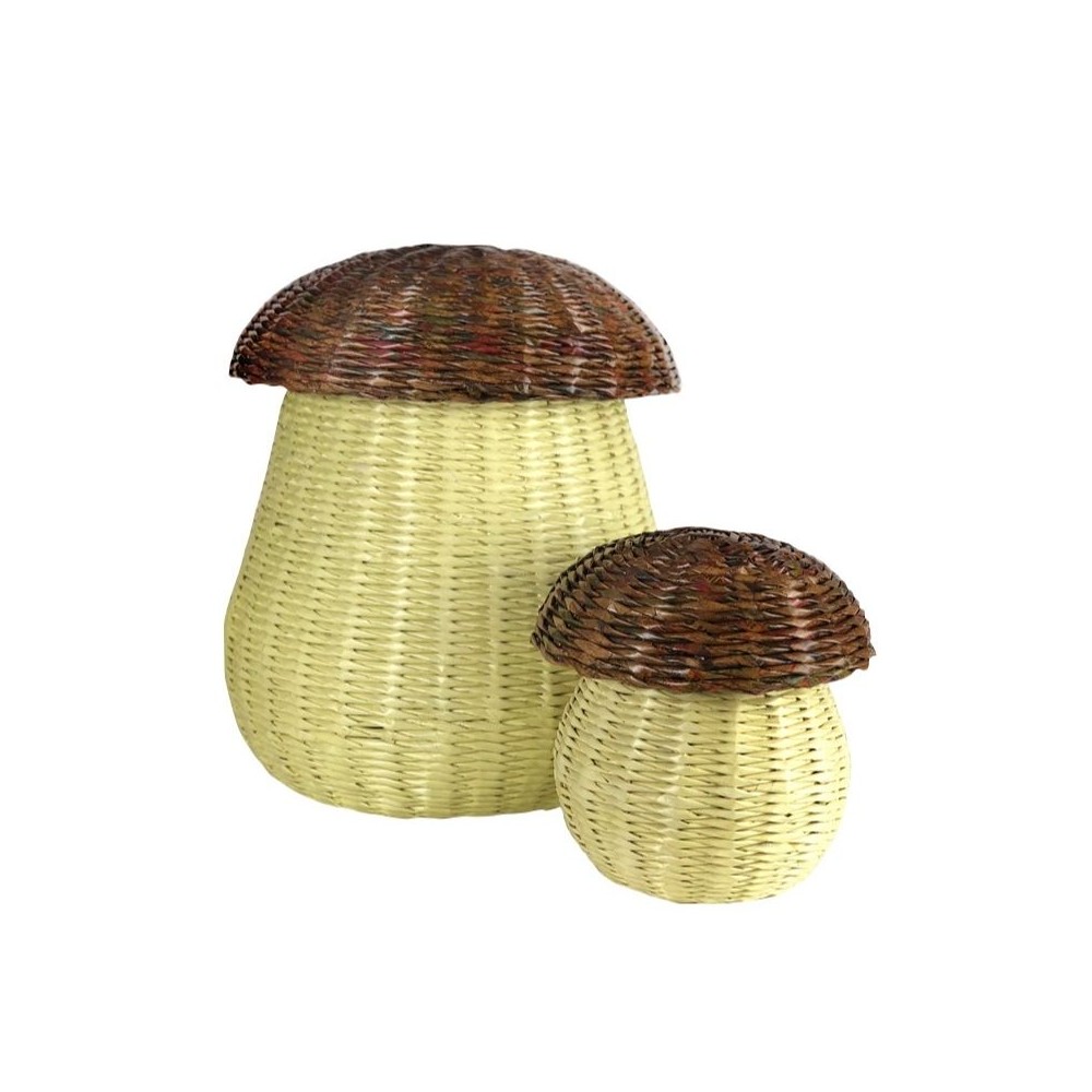 Також вони знайдуть своє місце у спальні чи вітальні, де у великий кошик можна сховати ковдри та подушки після невеликого сну. Кошики для іграшок БІЛІ ГРИБИ виготовлені вручну з паперового плетіння, покритого фарбою та водорозчинним лаком, відповідають стандарту PN-EN 71-3 щодо міграції шкідливих елементів. Завдяки цьому ми можемо бути впевнені, що наші кошики є безпечними для дітей. Кошики БІЛІ ГРИБИ, наші лісові схованки для різних дрібниць, спонукають вас стежити за порядком, тому що ховати в них предмети — це само собою весело, і вони виглядають так мило, що ви захочете мати їх у себе вдома. Приглушені кольори роблять їх ідеальним доповненням будь-якого інтер'єру.
