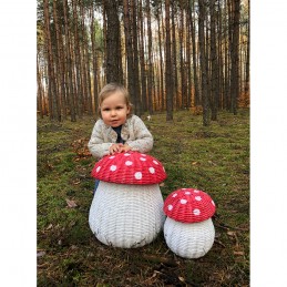 Приглушені кольори роблять їх ідеальним доповненням до будь-якого інтер'єру. Наші контейнери для іграшок і дитячих скарбів у формі червоної поганки чудово впишеться в інтер'єр дитячої кімнати в лісовому стилі. після невеликого сну. Кошики для іграшок ЧЕРВОНІ ПОГАНКИ виготовлені вручну з паперового плетіння, покритого фарбою та водорозчинним лаком, відповідають стандарту PN-EN 71-3 щодо міграції шкідливих елементів. Завдяки цьому ми можемо бути впевнені, що наші кошики є безпечними для дітей.