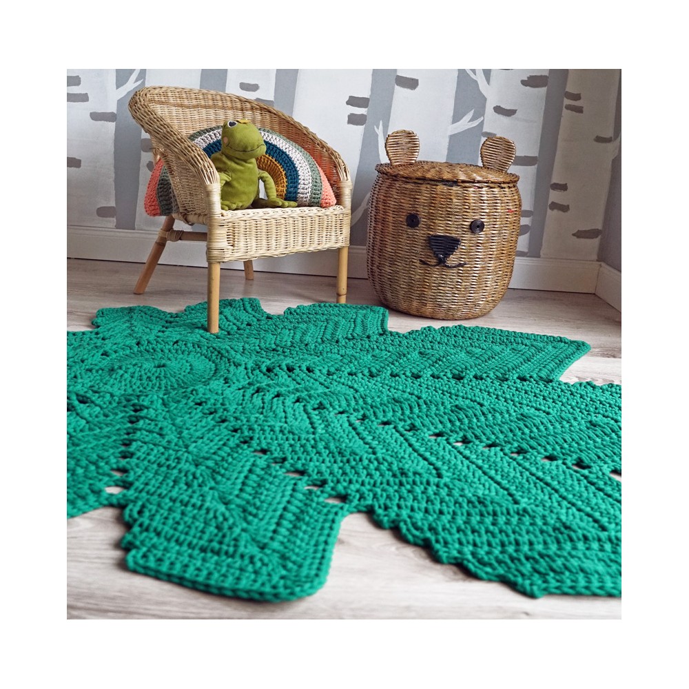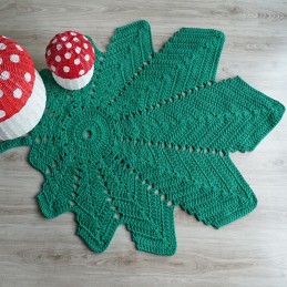 Наш килим "ЛИСТОПАД" у старовинному золотистому кольорі в'язаний вручну гачком із бавовняного шнура в зеленому кольорі